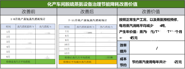 電儀、化產(chǎn)及運(yùn)焦車(chē)間分別就優(yōu)秀設(shè)備專(zhuān)項(xiàng)改善案例進(jìn)行了分享,各車(chē)間對(duì)該階段TPM設(shè)備改善數(shù)據(jù)進(jìn)行綜合統(tǒng)計(jì),各車(chē)間累計(jì)提升生產(chǎn)效率達(dá)1萬(wàn)6228個(gè)小時(shí),累計(jì)效益達(dá)181.9萬(wàn)元。